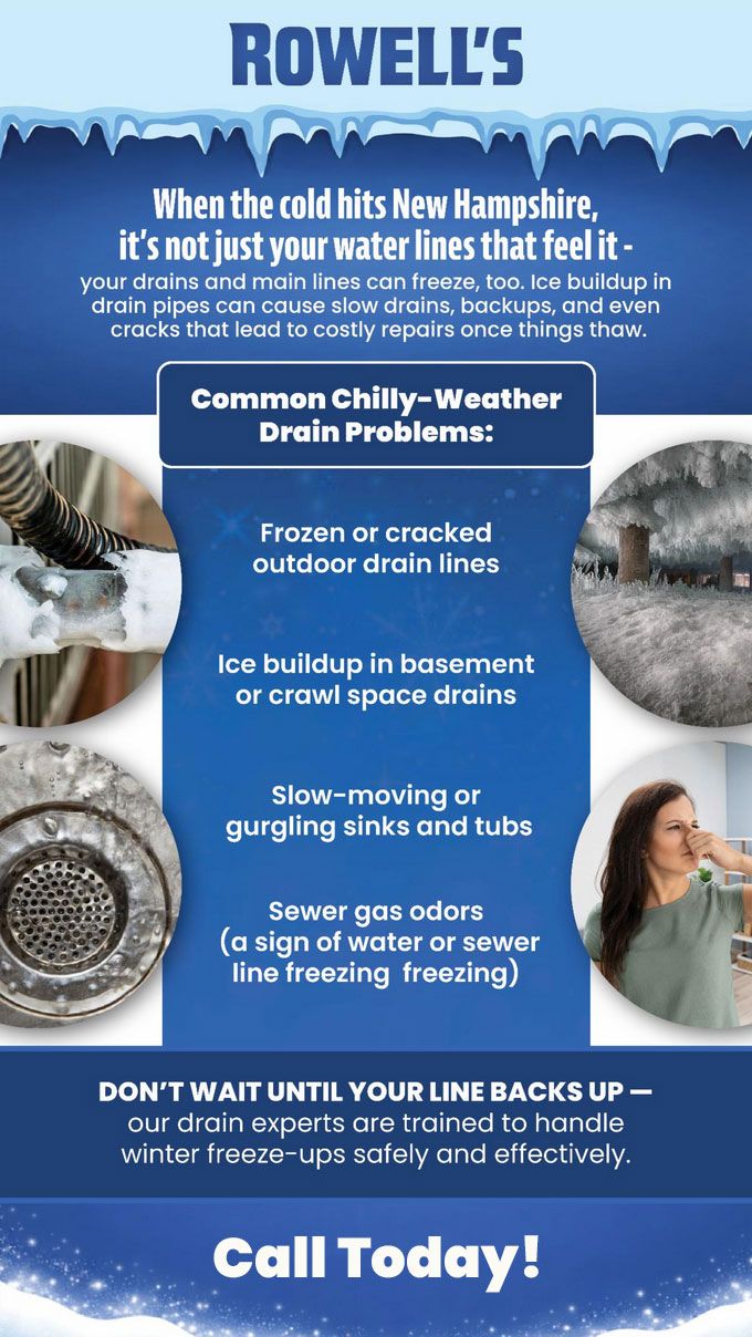 DON'T WAIT UNTIL YOUR LINE BACKS UP! Our drain experts are trained to handle winter freeze-ups safely and effectively.